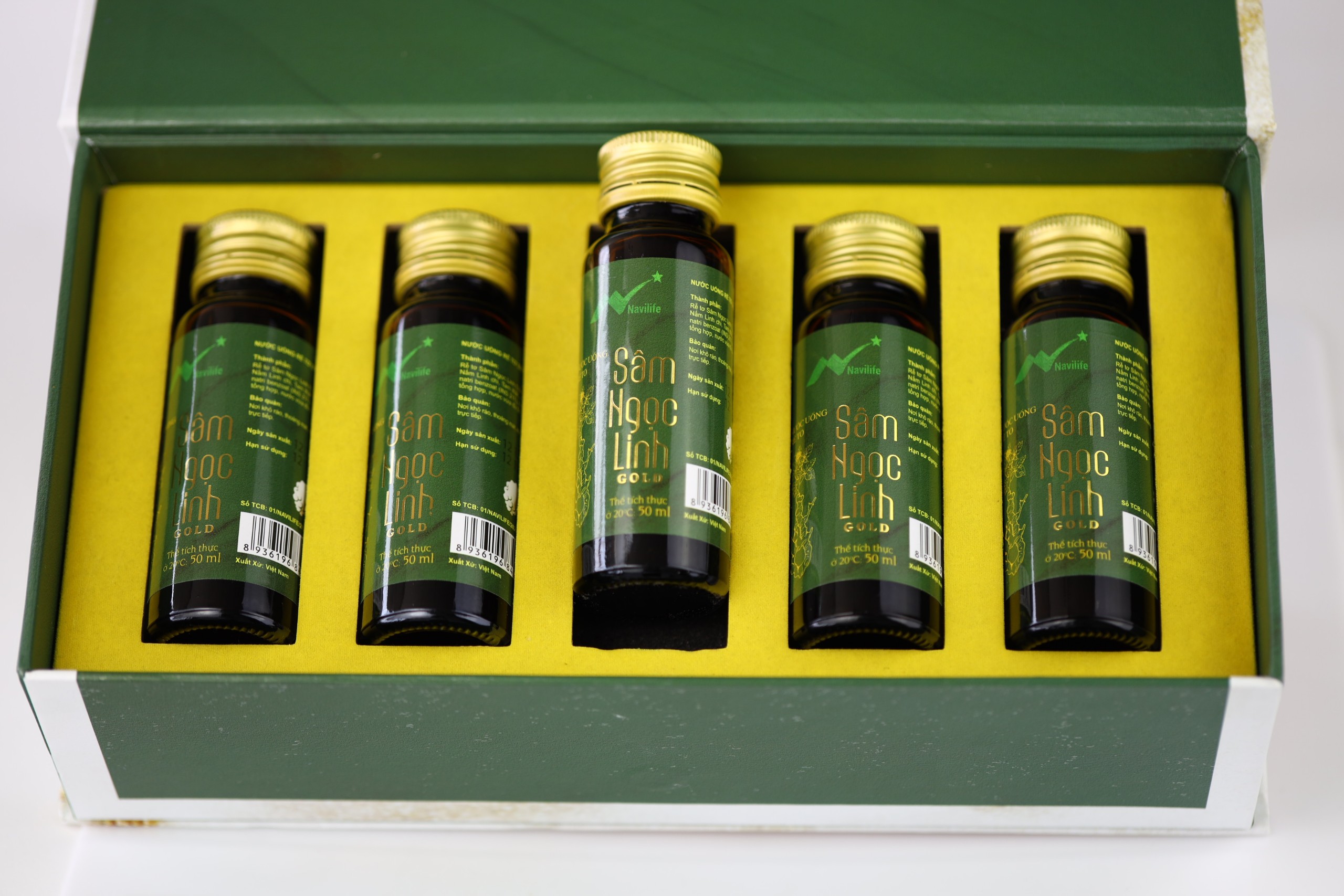 Nước uống Rễ tơ Sâm Ngọc Linh Navilife Gold - Hộp 5 chai thủy tinh cao cấp