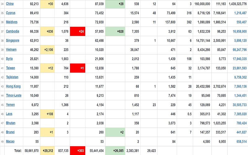 Kết quả phân tích dựa trên những con số biết nói, giúp ta hình dung rõ, chúng ta đang ở giai đoạn nào của dịch: kết quả thống kê tuần tự theo các thông số. Tổng số ca mắc, ca mắc mới, tổng số ca tử vong, tổng số ca bình phục, tổng số ca đang điều trị, ca bệnh nặng, dữ liệu so sánh/1 triệu dân, và tổng dân số khảo sát.