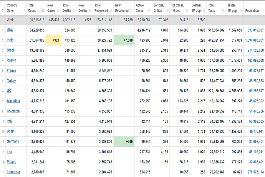 Nguồn: worldometers (dữ liệu trích xuất 17.07.2021)
